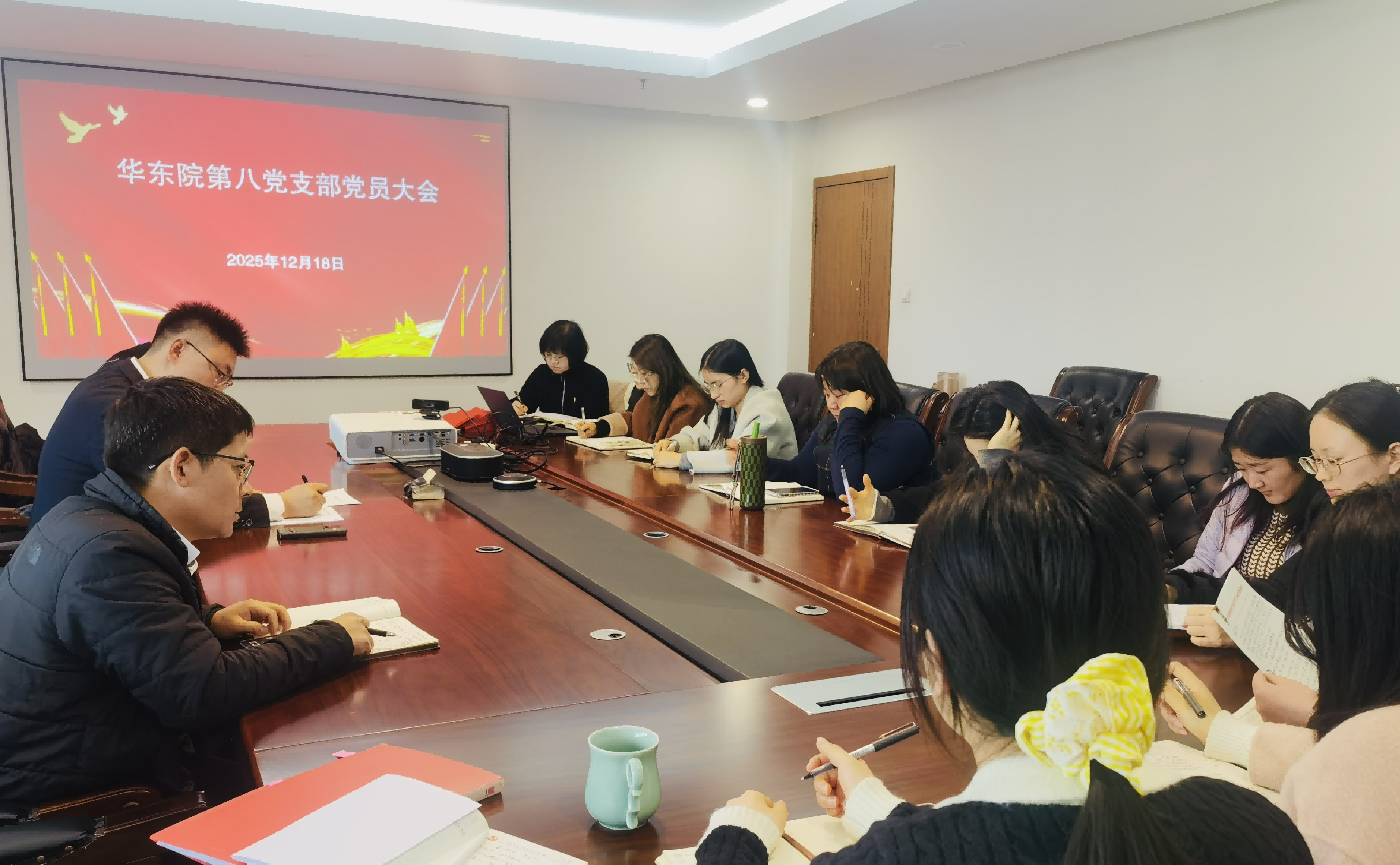 12月18日,我院第八党支部召开党员大会,支部书记康乐主持会议,支部全体党员、预备党员、第八青年理论学习小组人员参会。