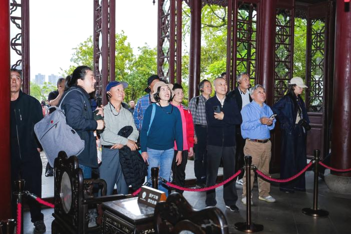 活动中,老干部们前往西塘古镇,漫步烟雨长廊,欣赏水乡风貌,大家边走边聊,共话单位发展,交流退休生活。古镇节奏缓慢而悠然,白墙黛瓦、春风拂面,令人身心放松。在古镇西园,大家走进根雕艺术馆,近距离观赏根雕工艺品,品味传统技艺的精妙。