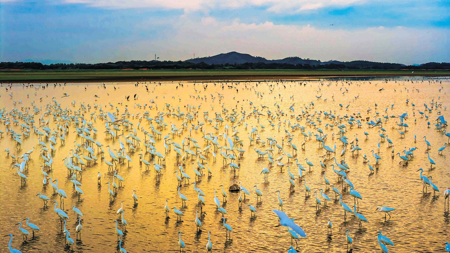 近年来,随着生态环境持续改善,鄱阳湖夏候鸟数量稳定在20万—25万只,主要以鹭鸟为主,包括白鹭、苍鹭、夜鹭、池鹭等16个种类。每年立秋过后,夏候鸟根据鄱阳湖区水位、气候和食物等变化情况,分批次往南方迁徙。等到来年春天,它们又将回到鄱阳湖繁衍生息。 (徐红波 汪顺英)