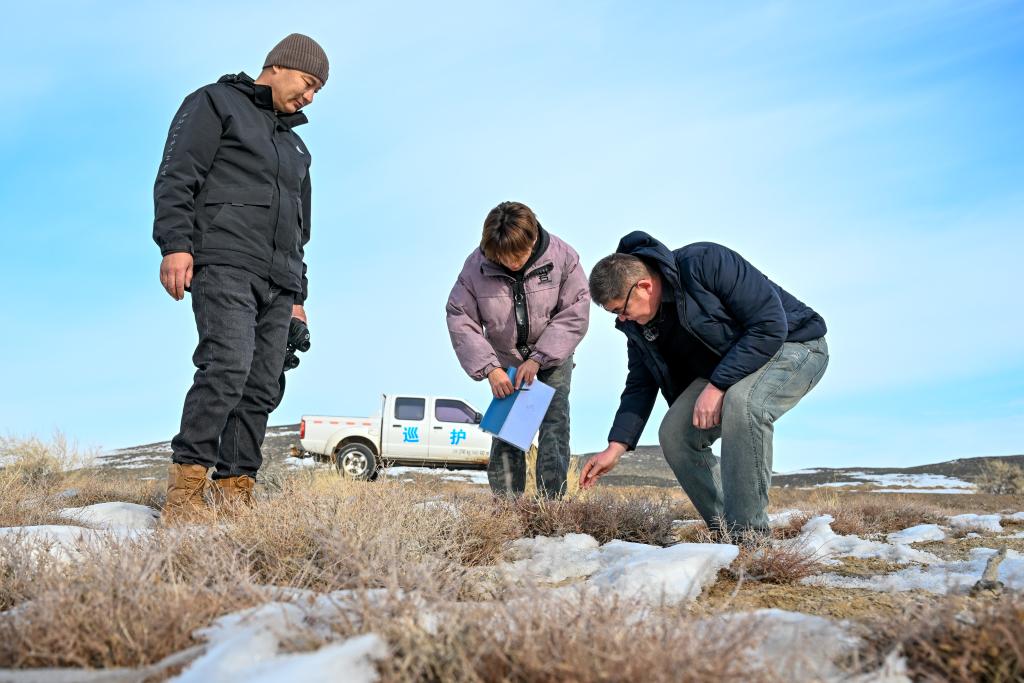 排查水源地、监测种群动态、记录野生动物活动情况……寒风像刀子一样刮在脸颊上,生疼。一上午,除了鹅喉羚、野驴,蒙坎并没有发现野马的踪迹。但他的脸上没有丝毫失落,反而多了几分安心。“这说明它们自己找到了适合生存的地方,不需要我们太过担心。”