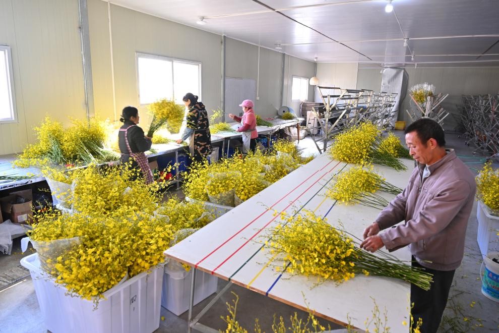 1月15日,在位于周宁县浦源镇的福建馨慧兰园艺有限公司,工人分拣包装文心兰。新华社发