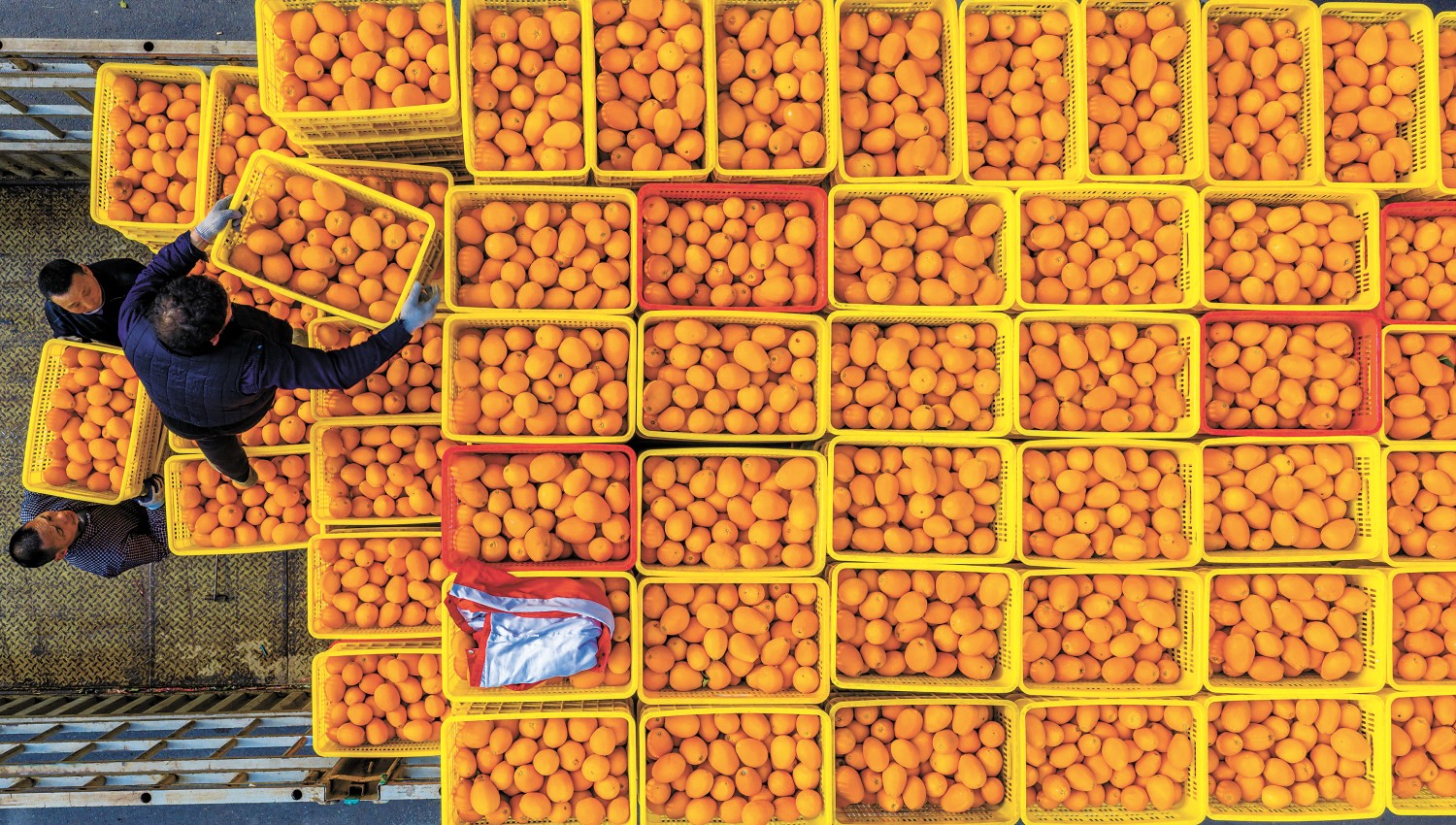 湖北省宜昌市秭归县10万多亩冬季脐橙近日进入销售旺季。当地村民抓紧采摘、转运、包装,将脐橙销往全国各地,供应春节市场以增加收入。近年来,秭归县利用独特的峡江气候,持续加强脐橙品种改良,形成春有“红肉”“伦晚”等春橙,夏有“蜜奈”“福令”等夏橙,秋有“九月红”秋橙,冬有“纽荷尔”“林娜”等冬橙,实现一年四季都有新鲜脐橙上市。