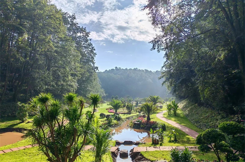 依托方山95%森林覆盖率,永仁县深挖方山森林资源和生态价值。科学规划“一核三区”功能布局,配套5千米森林步道,建成郁金香花海、杜鹃花谷等四季有花为主题的生态景观带16万平方米。春可赏花海:1.6万平方米郁金香花海单日最高客流达2.5万人次,成为“网红打卡首选地”。夏可享清凉:建成32间林间避暑木屋,客房预订率超90%;配套中医理疗馆推出“森林SPA”特色项目。秋可游禅境:红枫步道串联千年静德寺,开发“禅修+森林浴”疗愈套餐。冬可育生机:建成12座智能温室培育反季花卉,保障农户年均增收1.2万元。
