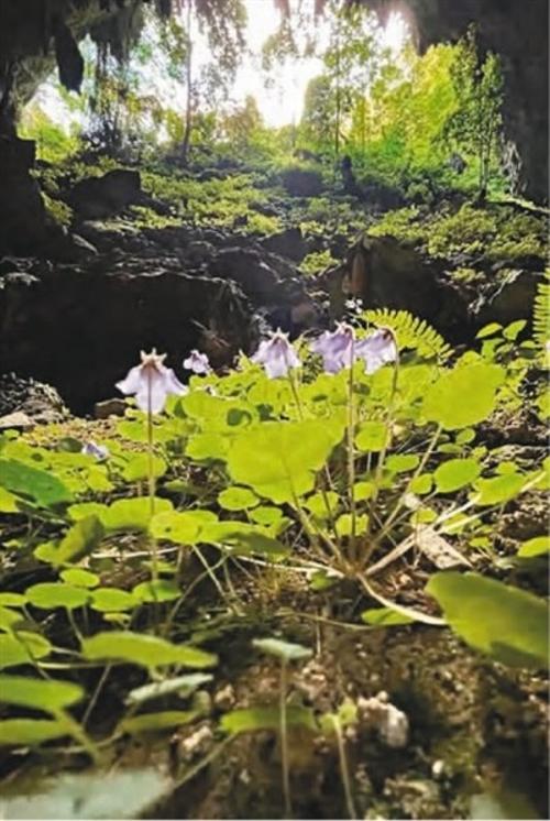 2021年夏天,我来到广西乐业的穿洞天坑,在天坑下的溶洞中发现了一片特别的植物即乐业石蝴蝶。