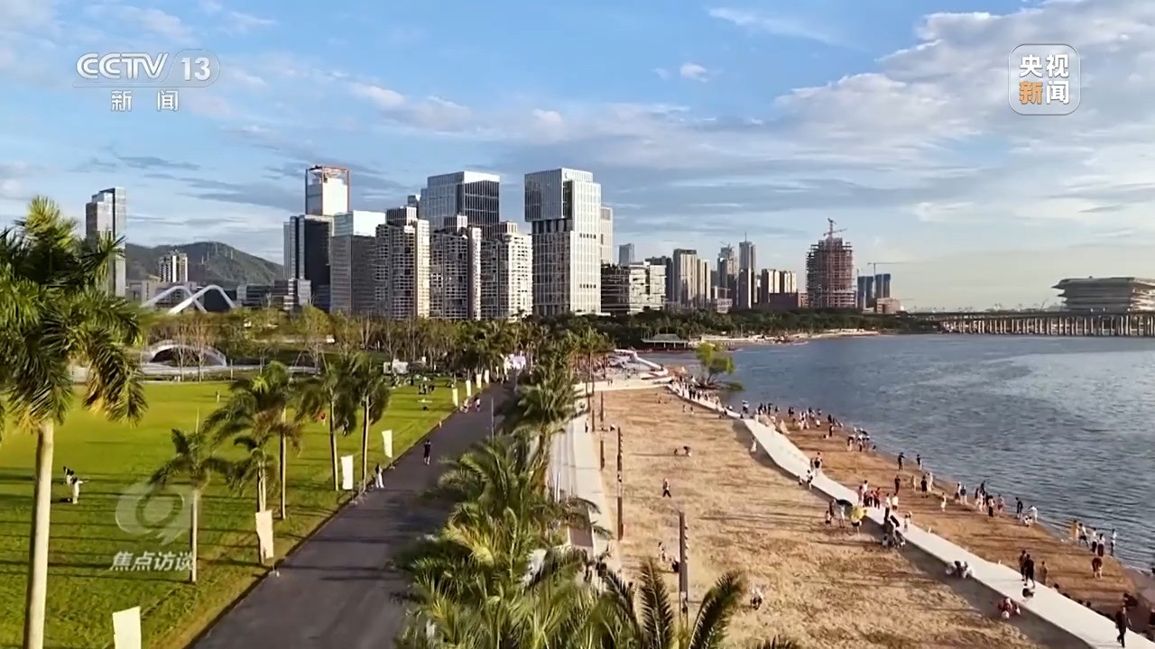 大海、沙滩、骑行、美美地拍照……今年8月,深圳前海石公园的桂湾段刚刚建成开放,也迅速成为年轻人热衷打卡的新地标。作为大型滨海公园群,这里有12公里海岸线和充满设计感的景观布局。周边商务楼里的年轻人很喜欢来吹吹海风,坐在沙滩椅上放空,这是他们最直接的“解压方式”。而这个刚建成的人工沙滩是小朋友们最喜欢的游乐园。