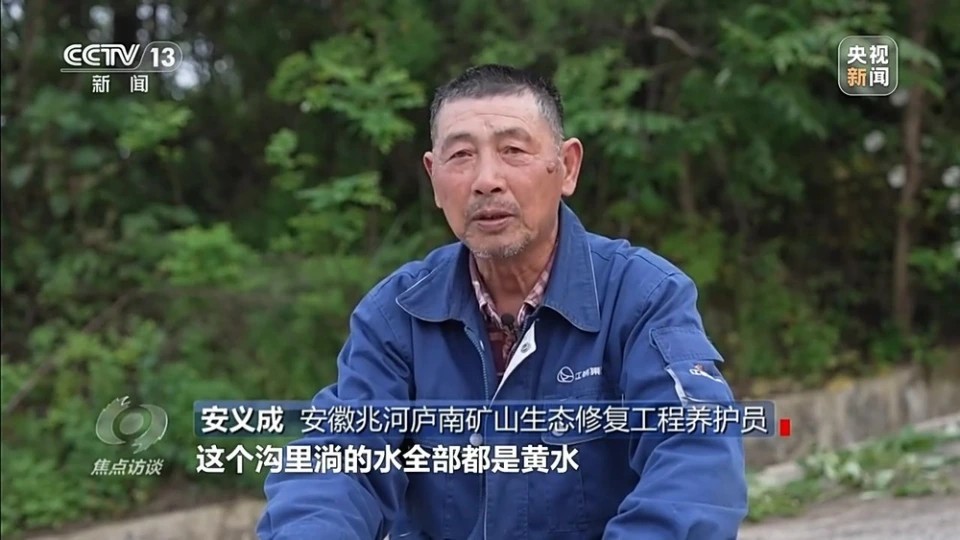 安徽兆河庐南矿山生态修复工程养护员 安义成:以前矿山上什么都没有,全部是废渣,沟里淌的水全部是黄水,吃水要去几里路外去挑水。