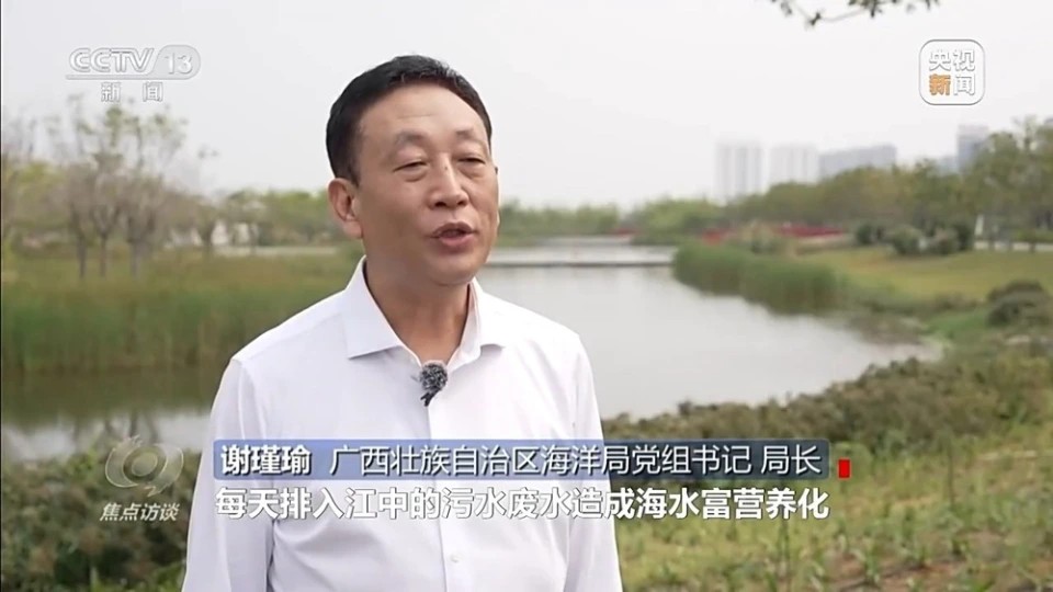 广西壮族自治区海洋局党组书记、局长 谢瑾瑜:修复前,每天排入江中的污水废水造成海水富营养化,直接影响近岸海域水质与滨海生态。海水水质下降引发绿藻爆发,影响公园内3000亩红树林生长,生物多样性下降,滨海湿地生态系统衰退。