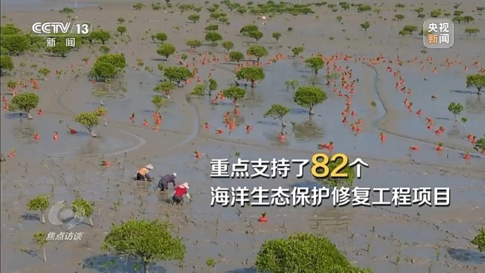 据统计,“十四五”期间,中央财政通过“蓝色海湾”整治行动、海岸带保护修复等重大工程,重点支持了82个海洋生态保护修复工程项目,带动全国整治修复滨海湿地76万亩、岸线820公里。目前,我国红树林面积达到47.5万亩,比21世纪初增加约43.8%,成为世界上少数实现红树林面积净增长的国家之一。