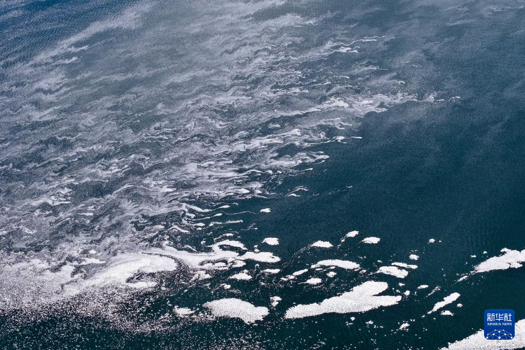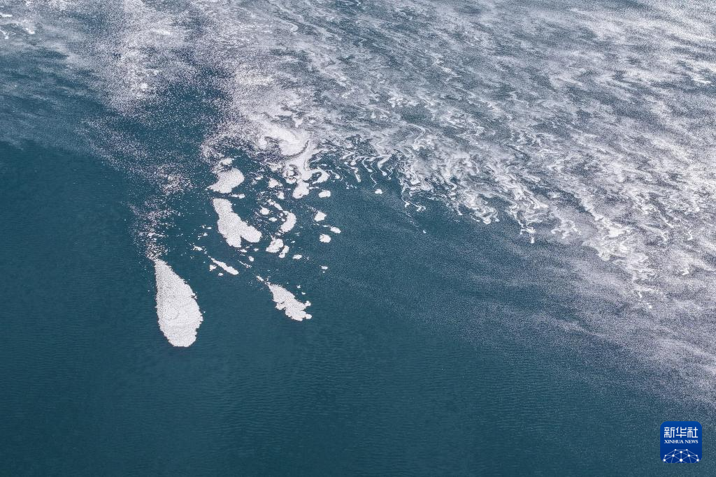 这是11月16日在甘肃省酒泉市阿克塞县阿伊纳乡拍摄的大苏干湖结冰湖面(无人机照片)。