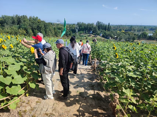 秋游活动期间,阳光和煦,微风宜人。老同志们精神矍铄,沿着公园内平缓的步道结伴而行,不时驻足欣赏身边的美景。在南苑森林湿地公园,登临园区制高点——燕景台,极目远眺,层林尽染的秋色尽收眼底;在温榆河公园中,步入芸上梯田,映入眼帘的是向日葵绚烂的花海景观。清新的空气让人身心舒畅,老同志们一边漫步赏景,一边兴致勃勃地分享着各自的退休生活趣事,回忆着曾经在林草系统奋斗的岁月,欢声笑语不断,其乐融融的氛围感染着每一个人。大家纷纷拿出手机、相机拍照留念,定格下与老友相聚的欢乐瞬间、与美景同框的温馨画面,一张张笑脸在秋日暖阳下显得格外灿烂。