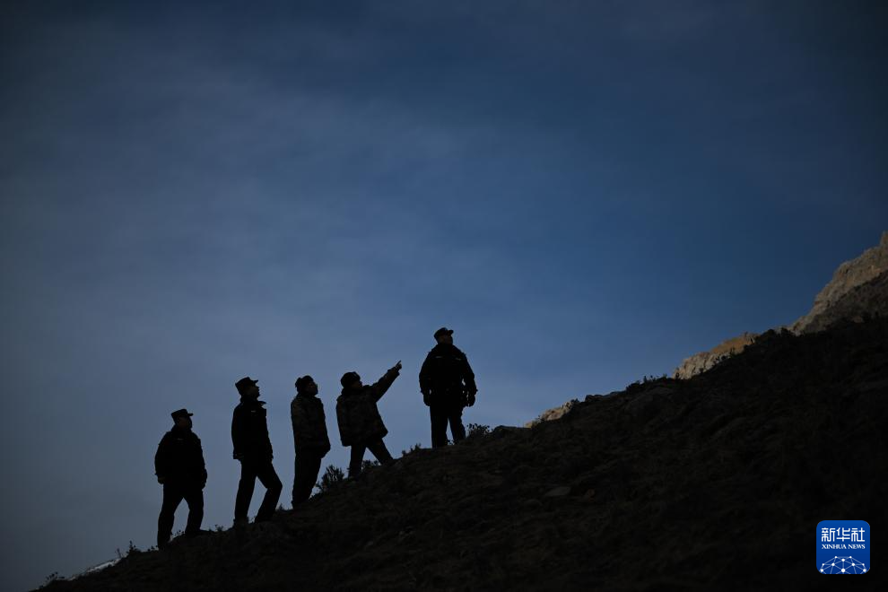 1月8日晚,在青海省海北藏族自治州门源回族自治县境内的老虎沟,民警在巡护途中休息。