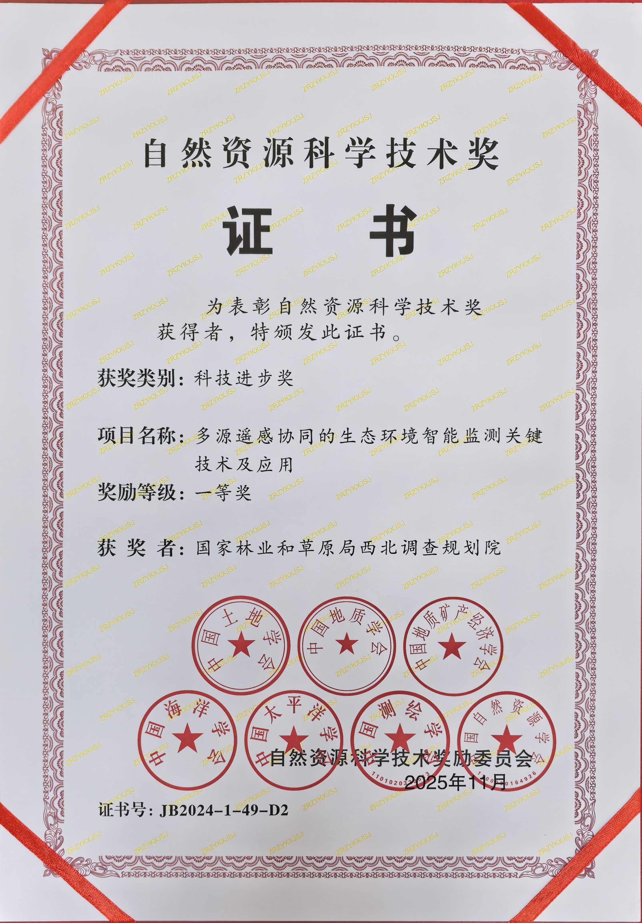 近日,我院参与的“多源遥感协同的生态环境智能监测关键技术及应用”荣获2024年度自然资源科学技术科技进步一等奖。