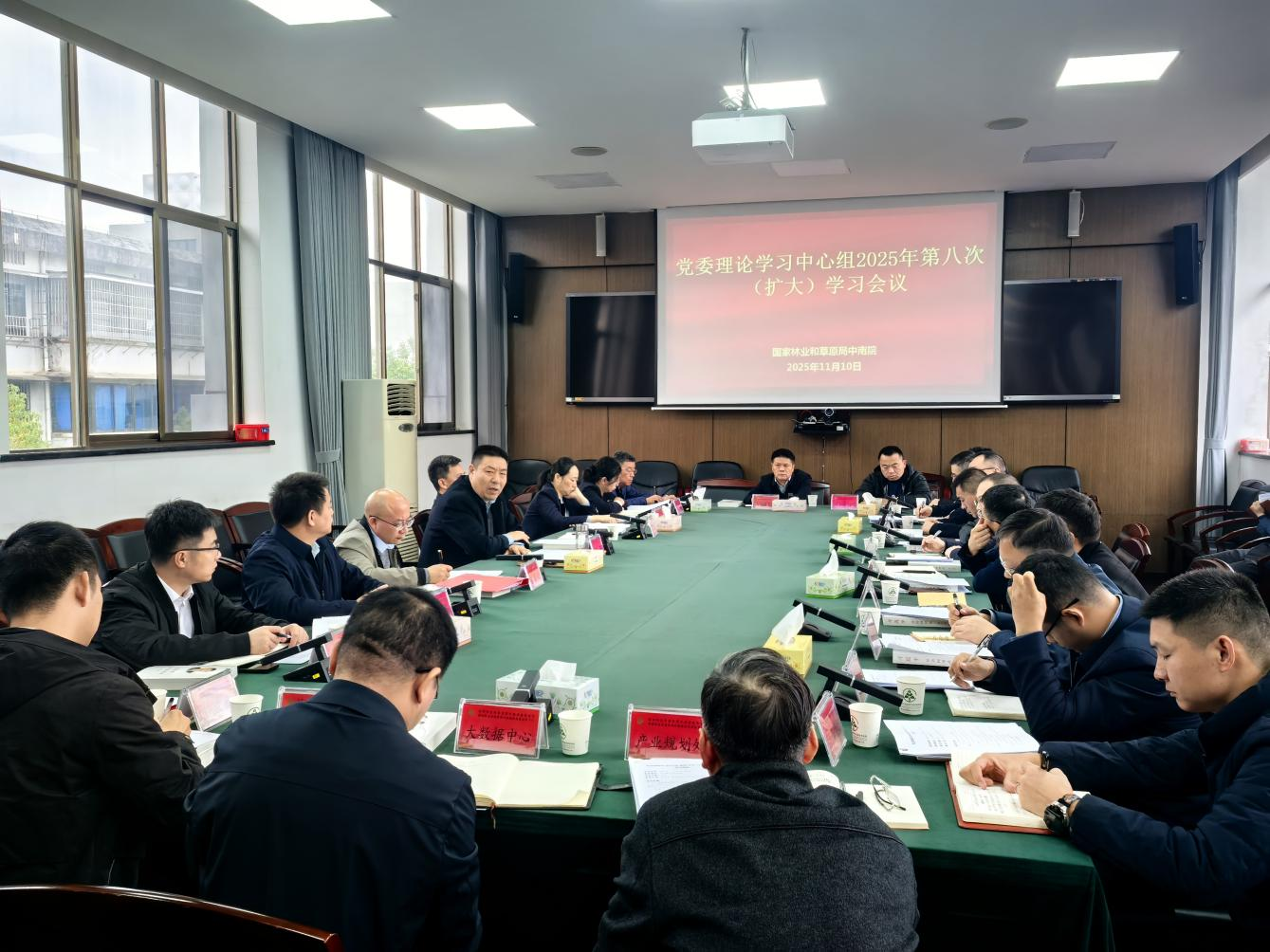 11月10日,中南院党委理论学习中心组(扩大)开展2025年第八次集体学习,深入学习贯彻党的二十届四中全会精神,引领全院自觉把思想和行动统一到全会精神上来,扎实推动中南院高质量发展,助力林草发展大局。院长、党委书记张平主持会议并讲话,在院院领导、党委委员、各党支部书记及全体中层领导干部参加学习。