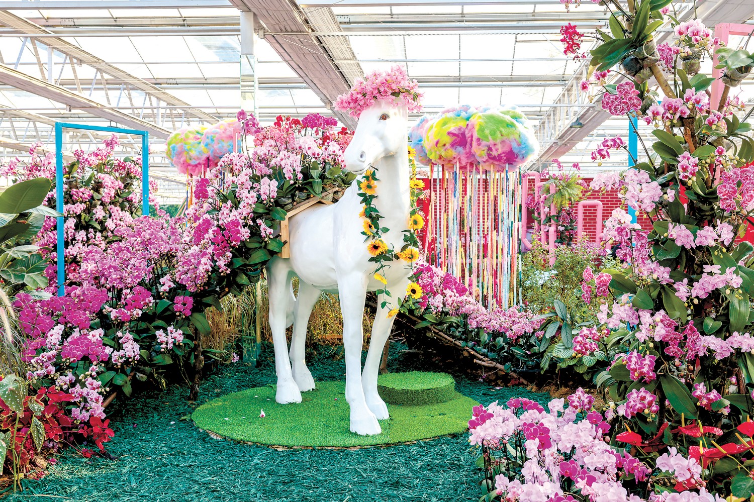 本次嘉年华充分发挥现代智能温室的优势,集中展出4万余盆精品兰花及多品类特色花卉景观,精心营造出“冬季入春、花海共赏”的独特氛围。场馆内设置“纳福”“仙境”“金兰会”“兰庭”四大主题展厅及兰布拉风情街,既聚焦蝴蝶兰、国兰等经典兰花品种,又引入兜兰、猴面兰、幽灵兰等珍奇品类,同时融入浓厚的节庆氛围与雅致的艺术设计,构建起层次丰富的赏兰空间。