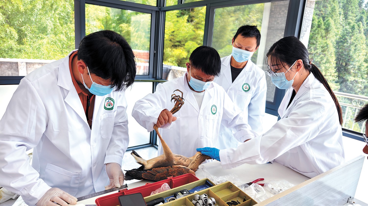 鸟类环志通过给鸟类佩戴标志环,监测其移动路线、生命周期等关键信息。20余载寒来暑往,营盘圩环志站已累计环志鸟类210种、超过4万只,其环志鸟种数约占全国鸟类总种数的14.3%。保护区环志候鸟种数连续8年保持增长,还发现了江西鸟类分布新记录——白尾蓝地鸲。依托候鸟密集的优势,该站成为全国野生动物疫源疫病监测网络的关键节点之一,累计采集候鸟标本9000余份。