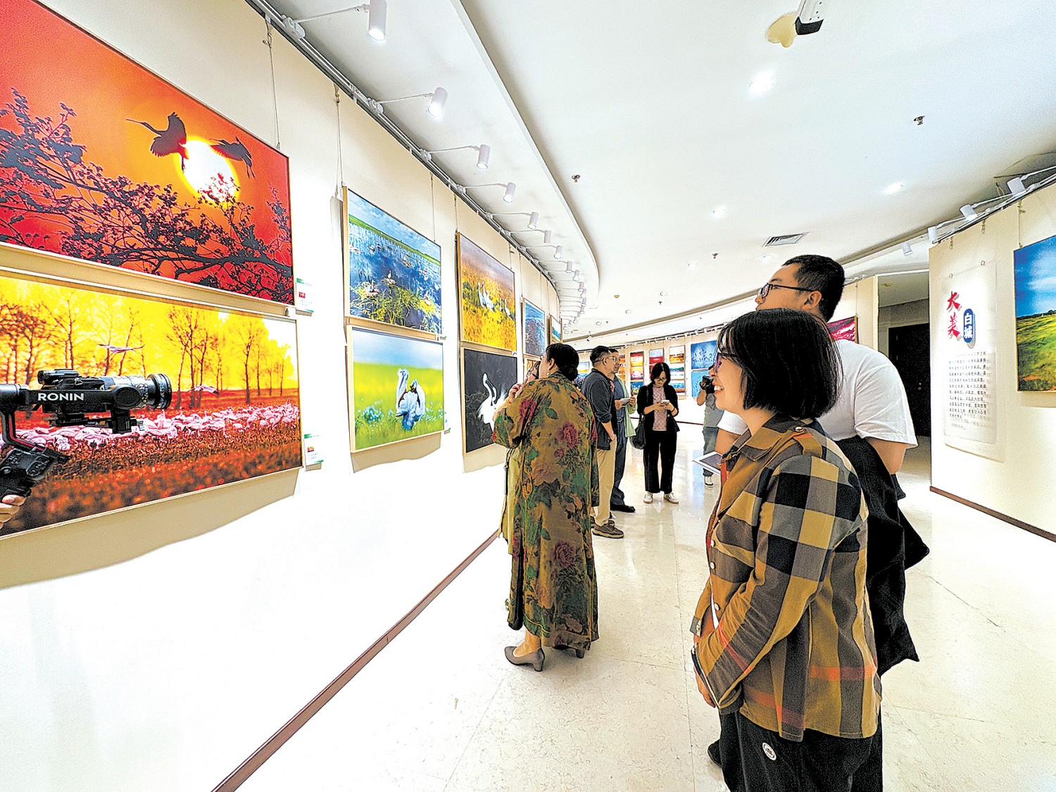 游客欣赏吉林白城生态摄影美术展