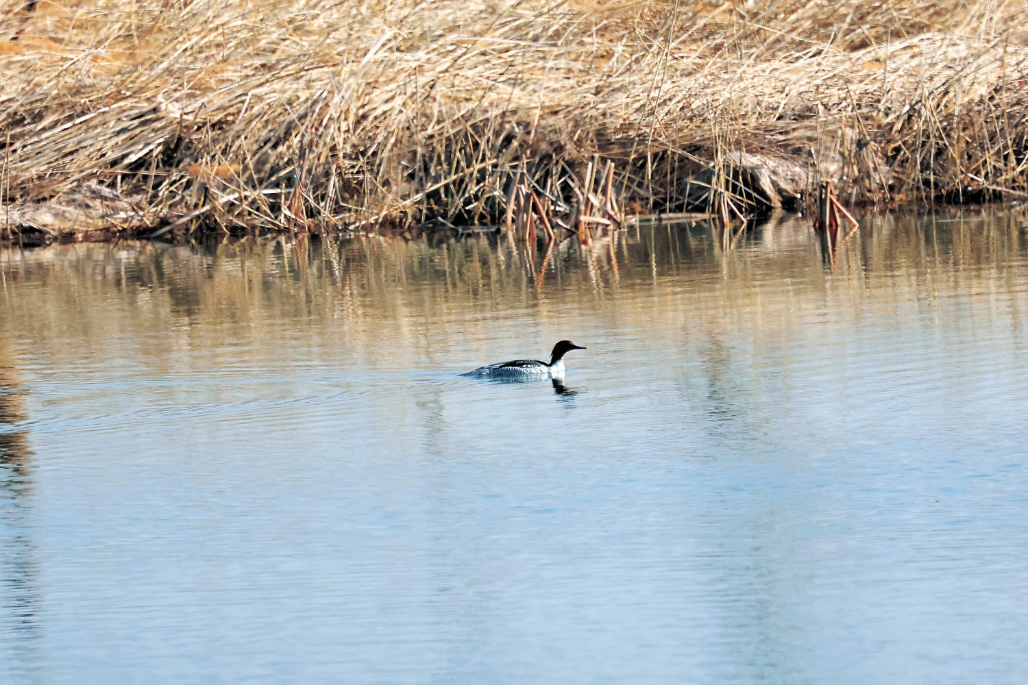 中华秋沙鸭为国家一级保护动物,已在地球生存超千万年,素有“水中活化石”“鸟中大熊猫”之称,全球越冬种群不足1500只,对水质与栖息环境极为挑剔,是湿地生态健康的“天然检测仪”。雄鸟头冠黑绿光泽,体侧鳞纹如铠甲;雌鸟则为棕褐头羽、灰褐躯体搭配胸前褐斑,素雅而灵动。