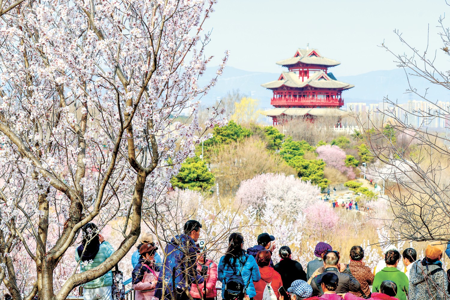 全市精选“一花一韵”赏花点位。在城区公园,有北海公园的“山桃映白塔”、朝阳的海棠花溪、亦庄的泡桐大道等赏花顶流。在京郊山野,有门头沟戒台寺的丁香、平谷的万亩桃花、大兴梨花等独特的郊野春日韵味。此外,主题赏花游线串联全域特色花镜。从奥森公园桃花谷出发,沿中轴线一路向南,在景山公园邂逅牡丹花海,到中山公园尽赏缤纷郁金香,在世界文化遗产中感受古韵春色。也可以从西边桃香遍野的老山城市休闲公园启程,向东依次打卡玉渊潭烂漫樱花、明城墙遗址公园柔美海棠,在“神州第一街”尽览时代新貌与春日盛景。此次发布的“赏花购花地图”不仅展示花期、点位等信息,更是一份集交通、服务、文化活动于一体的全能攻略。