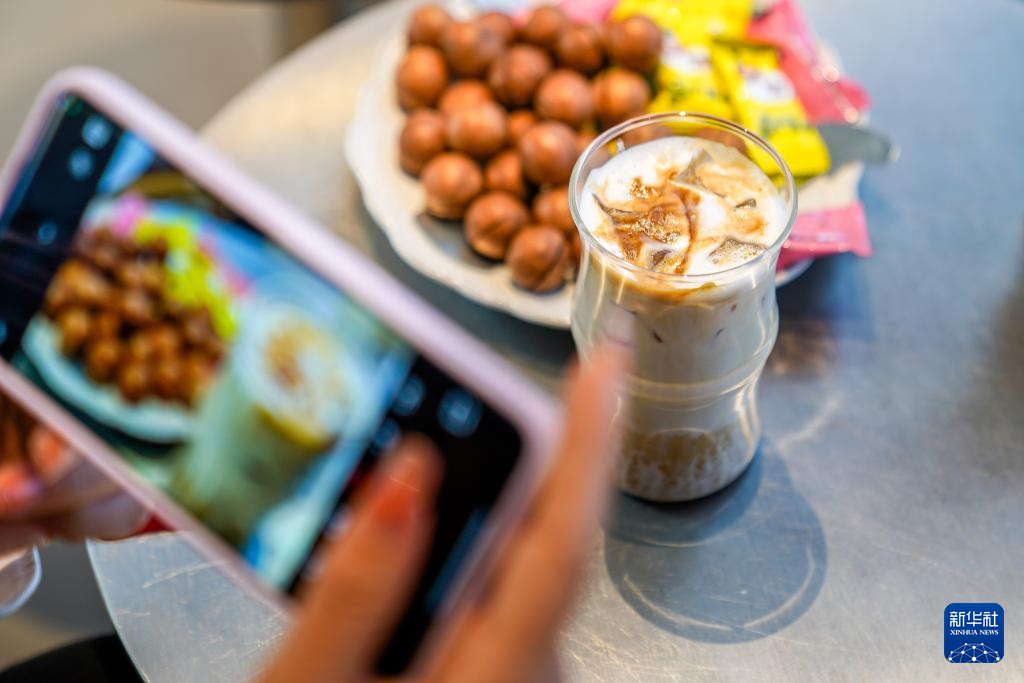 2026年1月5日,一名顾客在云南省临沧市一家咖啡店内品尝坚果和坚果风味的咖啡。新华社记者 彭奕凯 摄