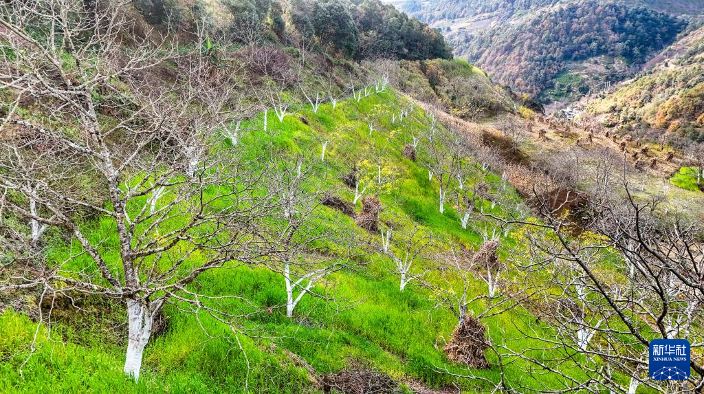 2026年1月8日在云南省永平县北斗乡拍摄的核桃树种植林(无人机照片)。新华社记者 彭奕凯 摄