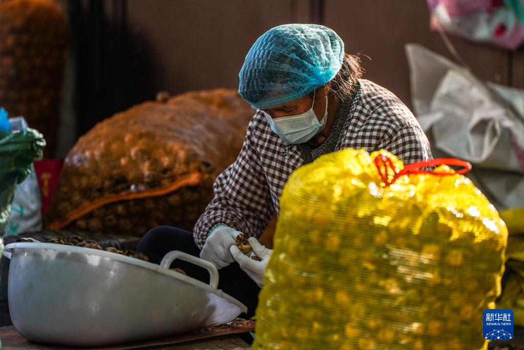 核桃是云南惠及面更广的特色产业。记者走进永平县一家农家小院,村民正围坐在核桃堆旁边,“咔嚓咔嚓”的破壳声此起彼伏,这些手工敲取出的果仁会被运往当地的加工厂。