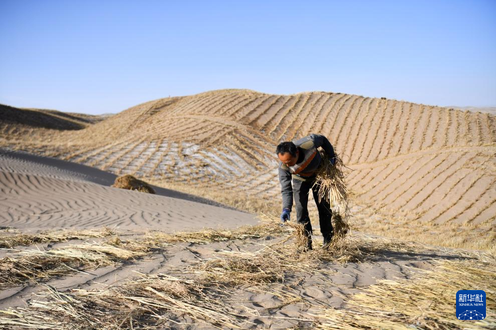 一场冬雪过后,在甘肃省酒泉市阿克塞哈萨克族自治县的库姆塔格沙漠边缘,施工人员忙着铺设沙障,有序推进甘肃省酒泉市祁连山北麓阿克塞片区水源涵养与生态保护修复项目。该项目总规模22.2万亩,包括工程固沙、封滩(沙)育林、人工造灌木林等防沙治沙项目。