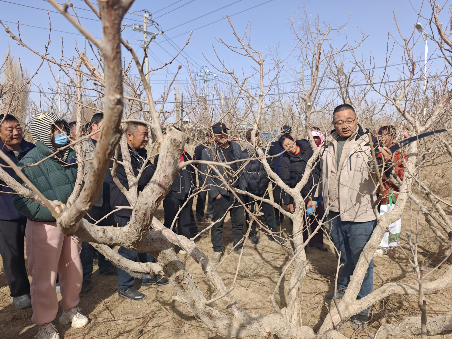 培训采用“理论讲解+现场实操”相结合的方式,技术人员结合杏树、桃树生长特点,重点讲解疏枝、短截、回缩等核心技术,示范如何去除病弱枝、徒长枝、交叉重叠枝,指导果农优化树体结构、改善通风透光条件。通过手把手教学、面对面答疑,让果农学得明白、用得顺手。(李纪腾 曹佳慧)