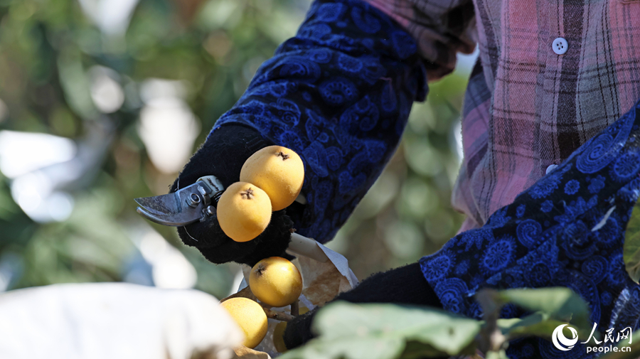 工人们在采摘白肉枇杷。人民网记者 李昌乾摄