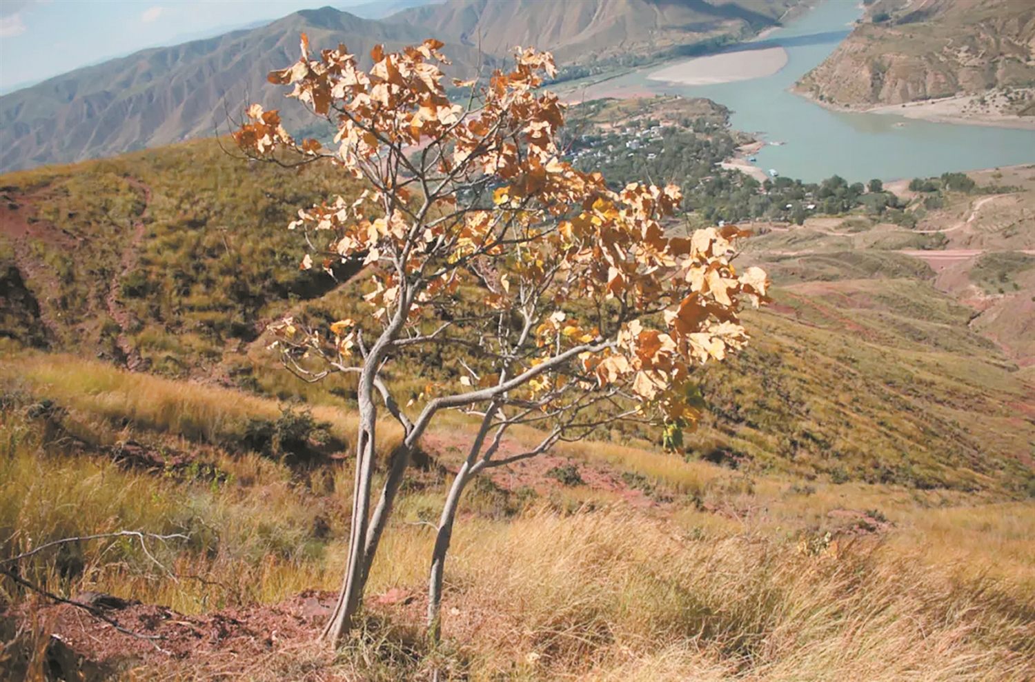 云南梧桐是我国特有树种,主要分布在云南和四川金沙江流域的干热河谷地带,是当地“河谷型萨王纳植被”中重要的乔木物种。它属于梧桐属植物,但由于生态环境破坏等原因,我国梧桐属多个种类已处于濒危状态,云南梧桐更是曾被认定为野外灭绝,后来虽有少量种群重新发现,但除一个小种群得到就地保护外,其余均受到严重人为干扰,已被列入云南省极小种群野生植物名录。