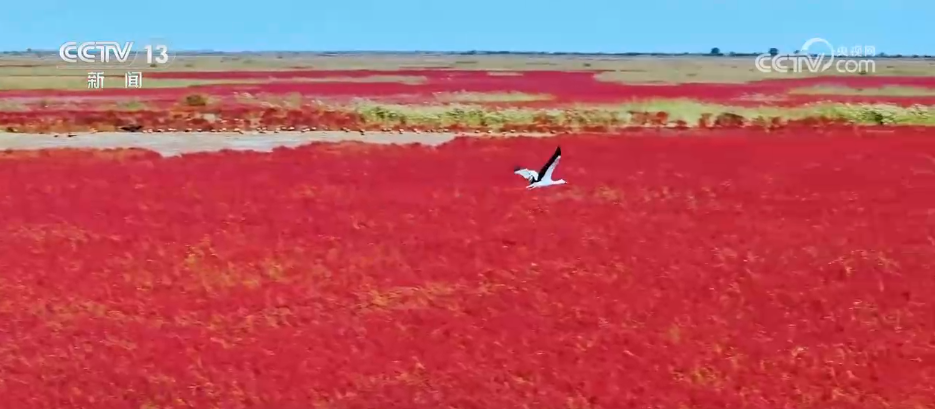 央视网消息:这里是位于山东东营的黄河入海口滨海滩涂,大片大片的翅碱蓬变成绛红色,如同一块巨大的“天然红毯”铺展于天地之间。它的变红不仅和季节相关,还和盐分有关。翅碱蓬生长在盐分较低的堤岸时,叶子是绿色的,生长在盐分较高的潮间带时,叶子就会变成红色,盐分越高,叶子越红,远远看去就像铺在地上的红地毯。目前,这里约有翅碱蓬5.2万亩,形成了秋季黄河口一道独特的风景。