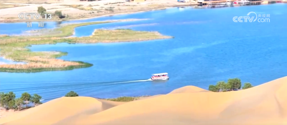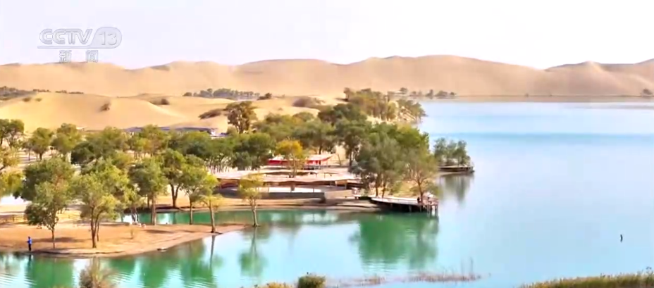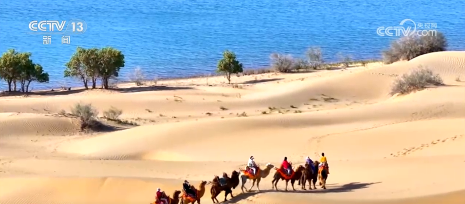 这里是位于新疆巴州尉犁县的罗布湖景区,碧蓝的湖水清澈如镜;湖岸四周,金色的沙丘连绵起伏,逐渐泛黄的胡杨成片在湖畔扎根,青黄渐变的色块铺向天际,与湛蓝的湖水、金色的沙丘共同构成一幅浓墨重彩的秋日画卷。罗布湖水域面积1.2万亩,近年来,当地不断加大生态环境的保护力度,生态持续向好,成为人们亲近自然、感受大自然魅力的好去处。