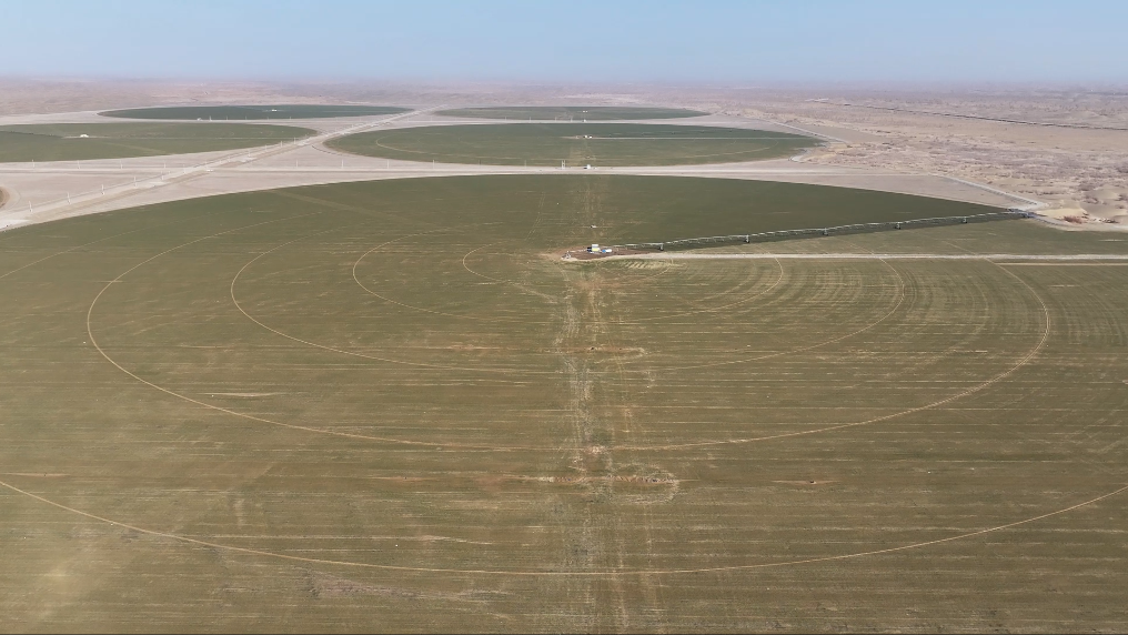 解读:对比2025年3月和2026年3月的两张卫星影像,清晰显示了一个个与沙漠形成鲜明对比的绿色“同心圆”如从天降,直观呈现“沙漠变良田”的治理奇迹。