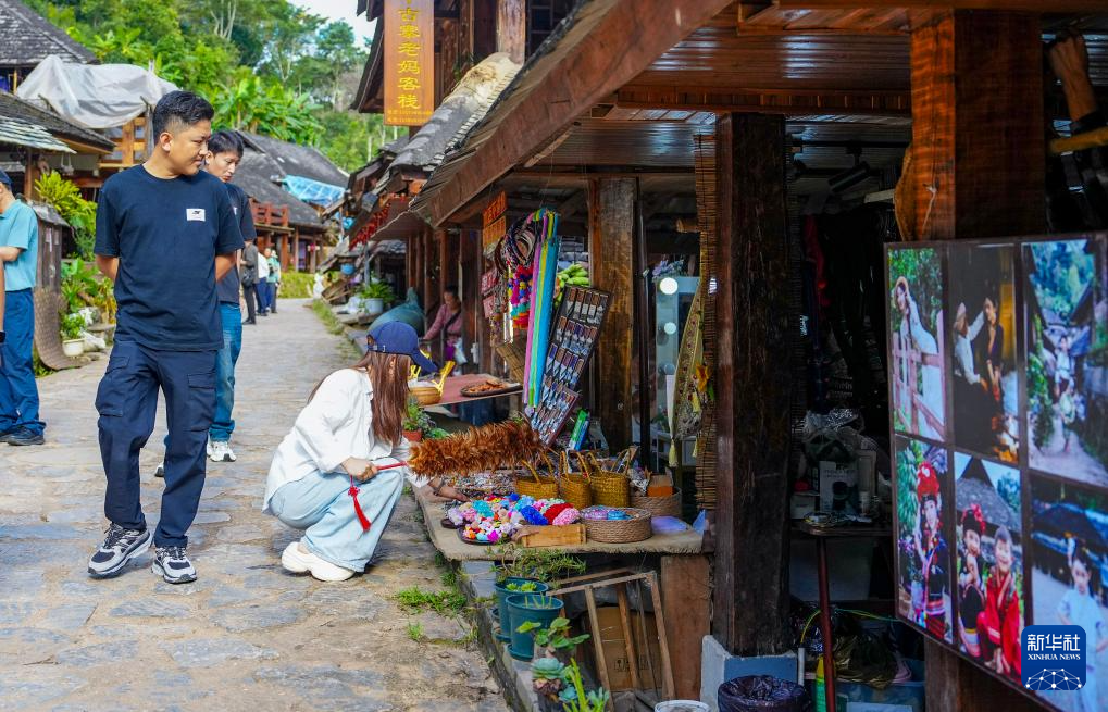 9月27日,游客在景迈山糯岗古寨游览。