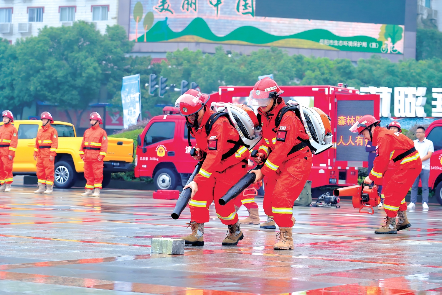 森林消防队伍现场开展火灾扑救演练。湖南省林业局供图