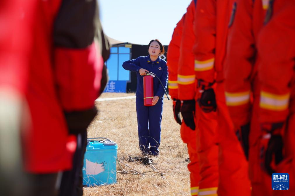 11月8日,在青海省海北藏族自治州祁连县阿咪东索林区,祁连县消防救援大队消防宣传员为当地护林员进行技能培训。