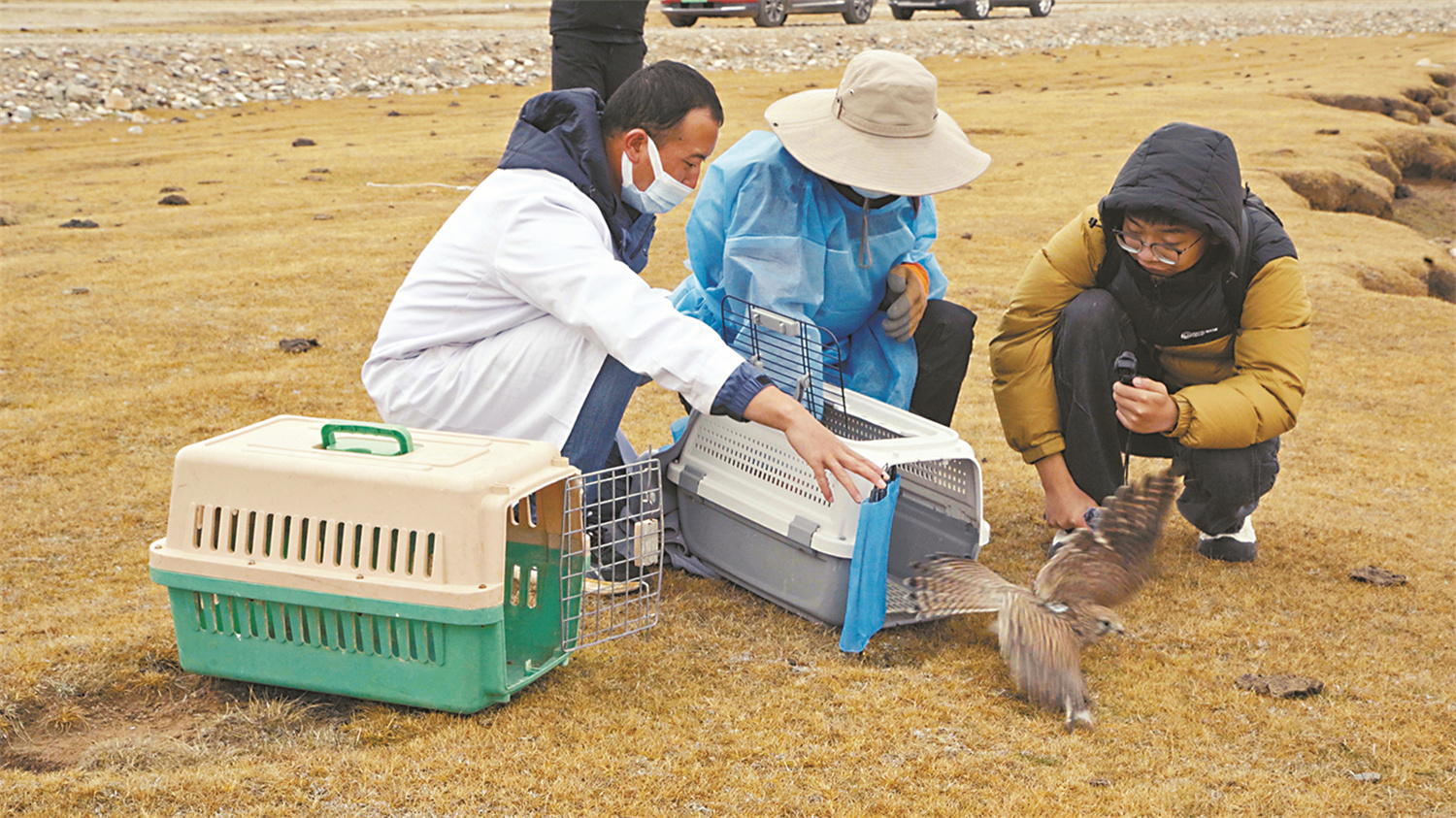 工作人员放归治疗康复后的猎隼