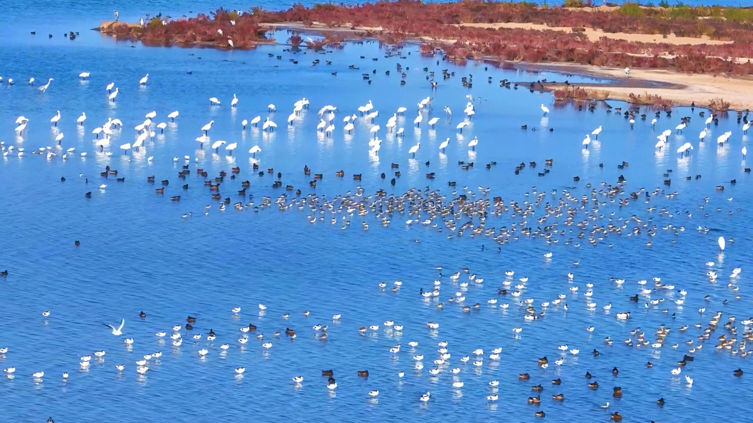 近年来,河北省沧州市南大港湿地坚持科学开展生态治理修复,通过运用系统性修复、立体化管护、综合性应用等多种模式,共修复退化湿地277.97公顷、改造鸟类栖息地225.4公顷,湿地生态功能和生物多样性水平持续提升。监测数据显示,截至2025年11月底,南大港湿地共记录到野生鸟类272种,鸟类迁徙数量从2021年3.5万只增至10多万只。