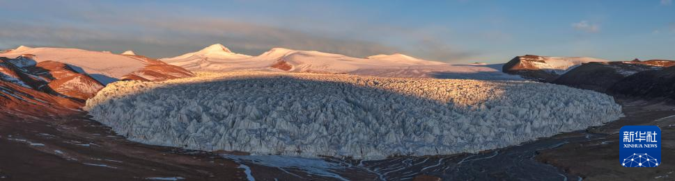 清晨的藏色岗日冰川(无人机拼接照片,3月10日摄)。