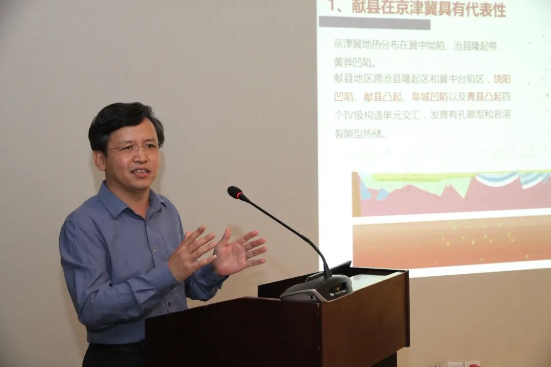 2018年,王贵玲在作《京津冀地热资源梯级综合利用科研基地(献县)建设》主题报告。