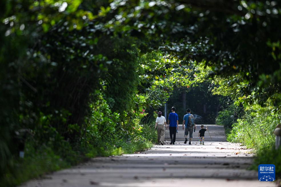 10月2日,游客在海南昌江海尾国家湿地公园游玩。