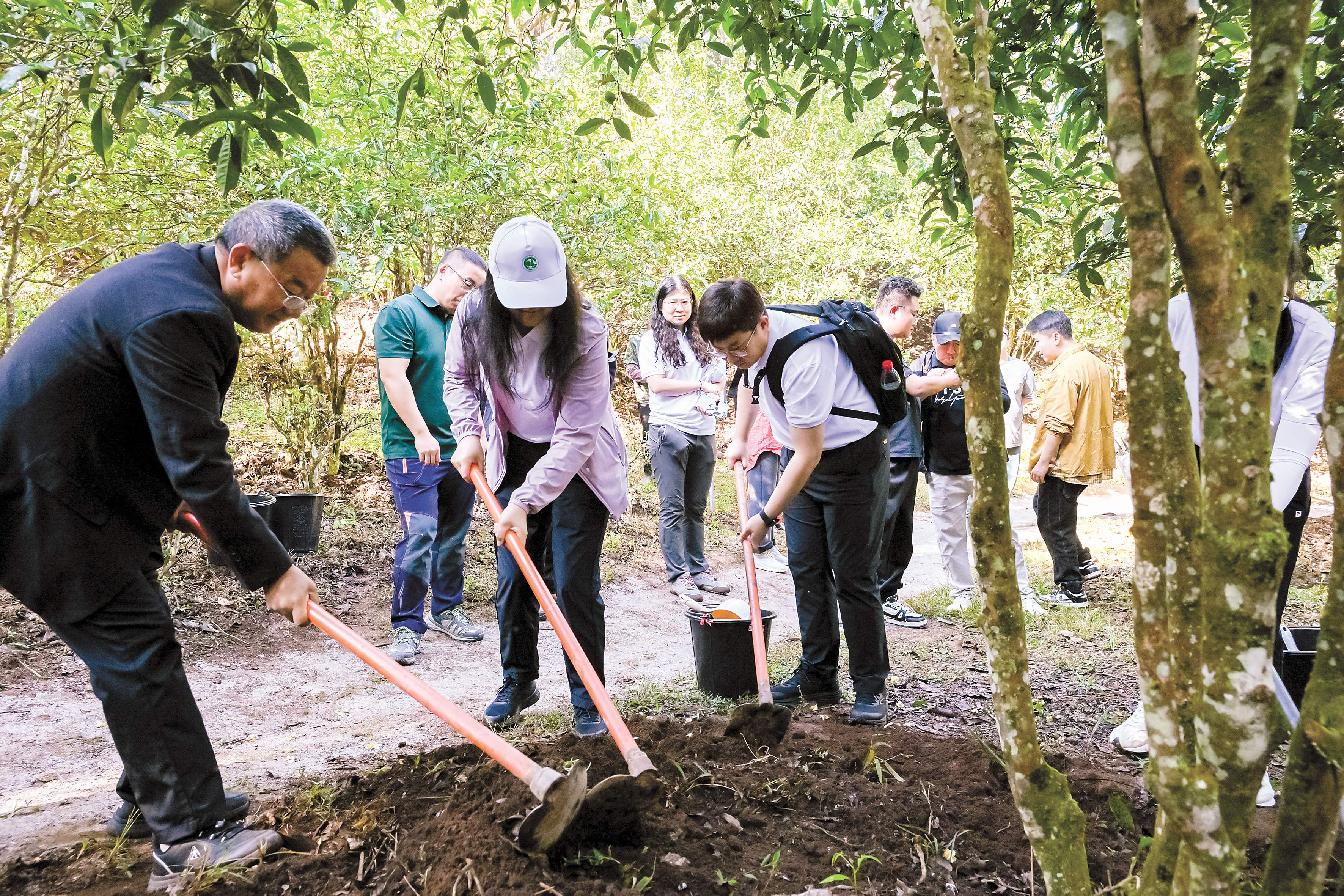 这里是云南省西双版纳傣族自治州勐海县,是中国绿化基金会“幸福家园——种下希望树”古茶树保护项目重点区域之一。近日,中国绿化基金会举办公益项目探访活动,邀请来自中国石油、中国石化的捐赠方代表共赴项目地,实地了解古茶树保护工作、项目执行情况,对古茶树土壤进行修复与维护,并体验采茶、炒茶、茶艺文化等环节。