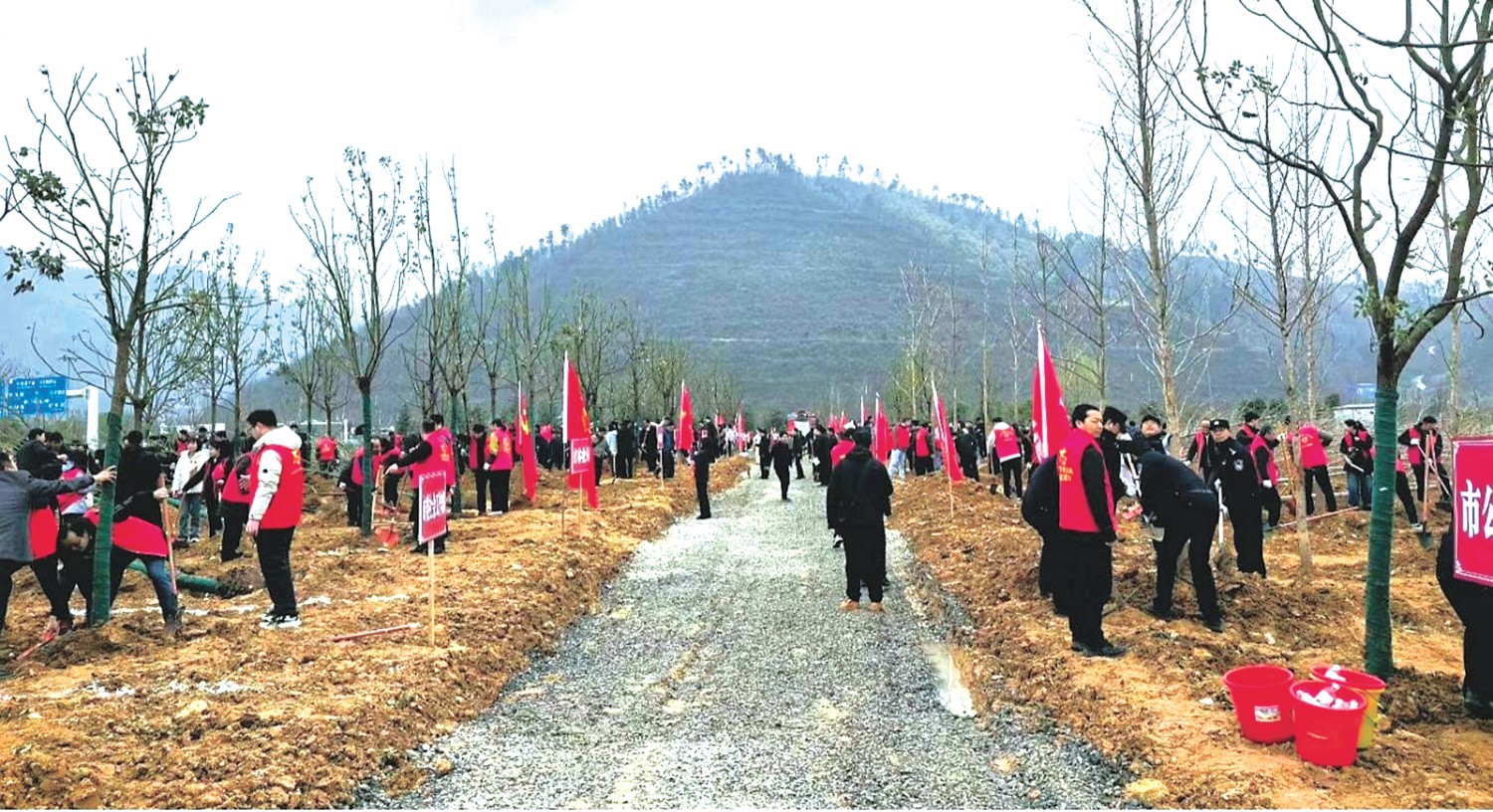 近日,湖北省十堰市市直机关2026年集中义务植树活动在张湾区十堰东高铁站前广场举行。106家单位的1500余名干部群众共栽植香樟、美人梅、银杏等树木4000余株,绿化面积近百亩,动员全市掀起春季绿化热潮。