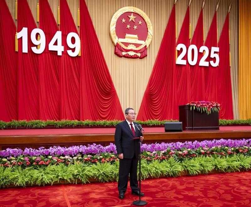 9月30日晚,庆祝中华人民共和国成立76周年招待会在北京人民大会堂举行。中共中央政治局常委、国务院总理李强主持招待会。新华社记者 翟健岚 摄