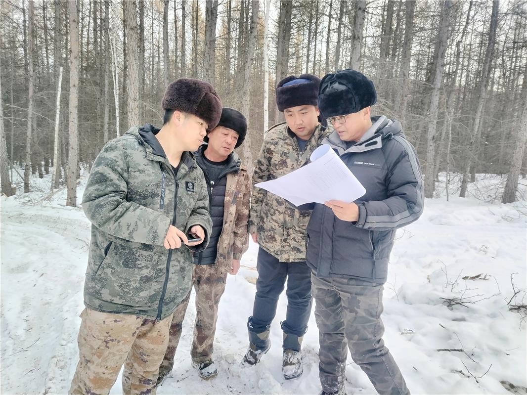 “蓝色漆点标注着清除木,哪棵留、哪棵伐,作业蓄积多少,都有严格生态与经营标准。”塔尔气经营管护中心副书记、主任李忠伟手持森林调查设计图,弯腰拂去树干积雪,指着标识向工作人员反复叮嘱。面对冬季雪大昼短的挑战,团队实行“早5点半开饭、6点出勤、中午带饭作业、下午5点收工”的攻坚模式,“越是任务重,越要在保安全的前提下赶进度,靠精准作业优化林分结构,守牢生态底线!”话音未落,他已穿梭在小班间,检查作业质量、叮嘱防护装备佩戴,确保进度、质量、安全“三不误”。