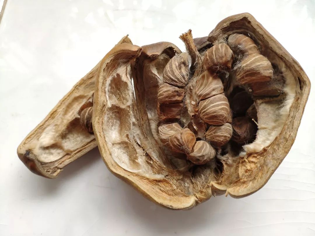 裂开的光瓜栗果实,可以看到棉毛(含笑)
