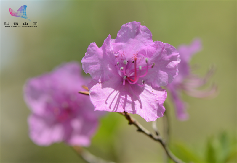 早春开放在山林下的迎红杜鹃。(沐先运摄)