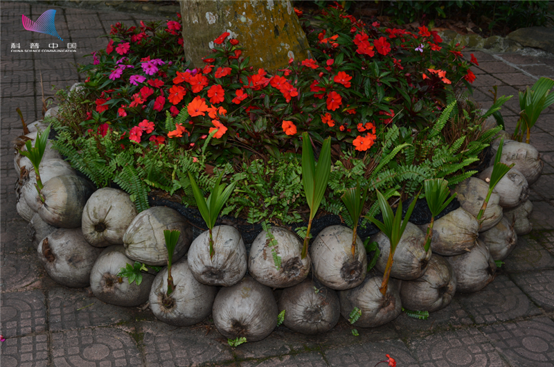 椰果围着椰子树,花团锦簇。(沐先运摄)