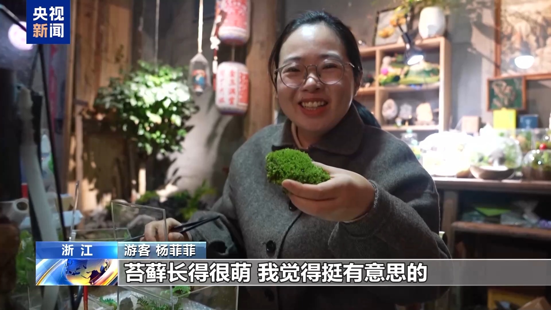 在浙江景宁畲族自治县,苔藓立体种植拓宽林下致富空间。在这家苔藓文创工作室,游客体验苔藓的悄然大变身:经过设计加工和创意盆栽,苔藓成为可携带的“微缩森林”和绿色伴手礼。