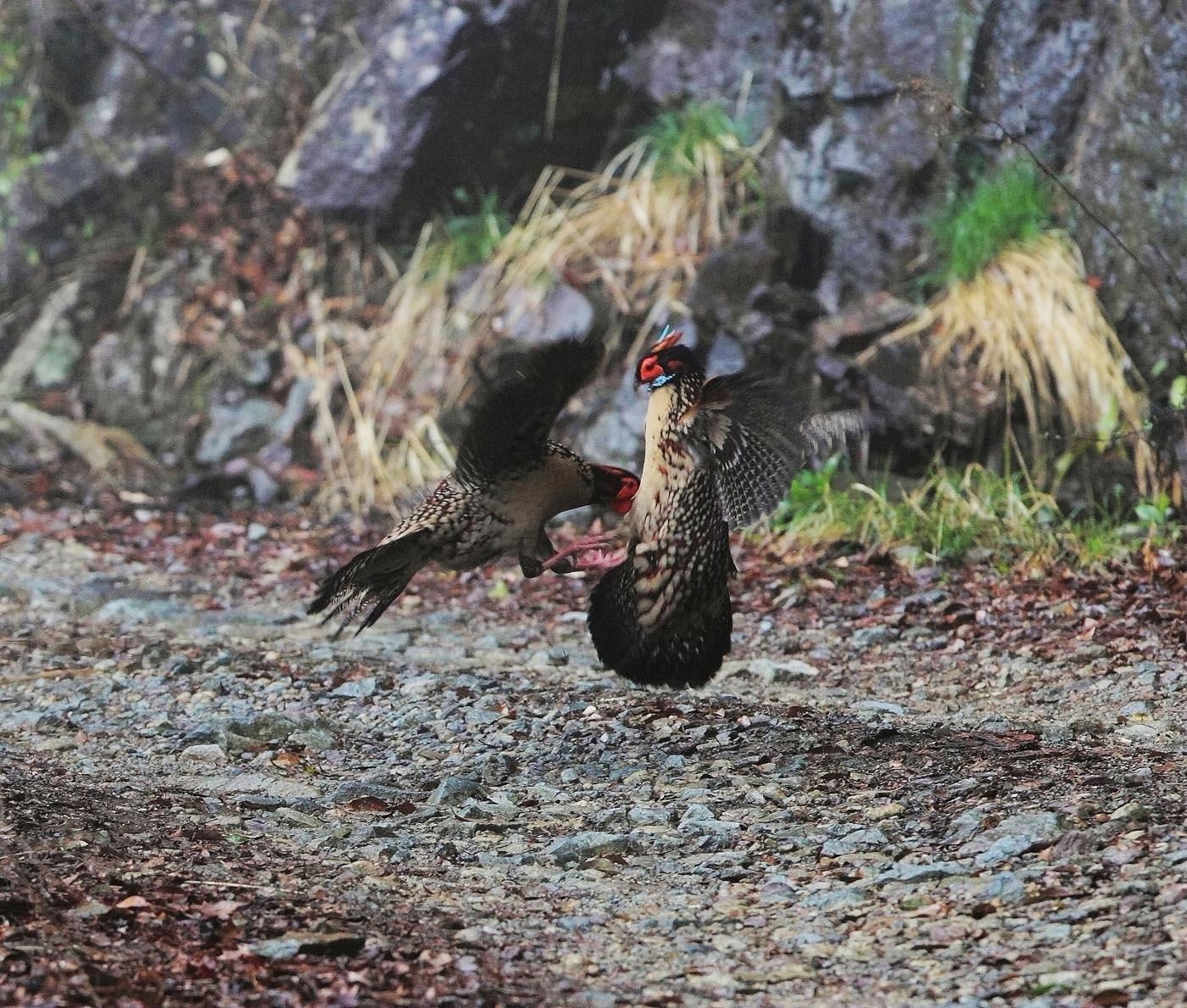 决斗中的黄腹角雉