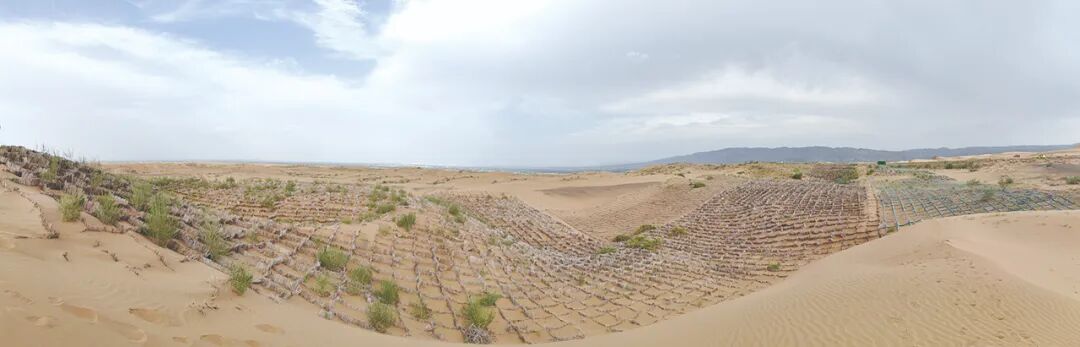 如今,沙坡头站的科学家们依然在寻找更高效的沙害治理办法。他们打造出了机织沙障与人工结皮协同增效固沙技术体系,即“沙坡头模式2.0版”。“这就像给沙漠穿上了一层坚固的铠甲,机织沙障先挡住风沙,再配合人工结皮,让沙子乖乖地待在原地。”张志山笑着说。